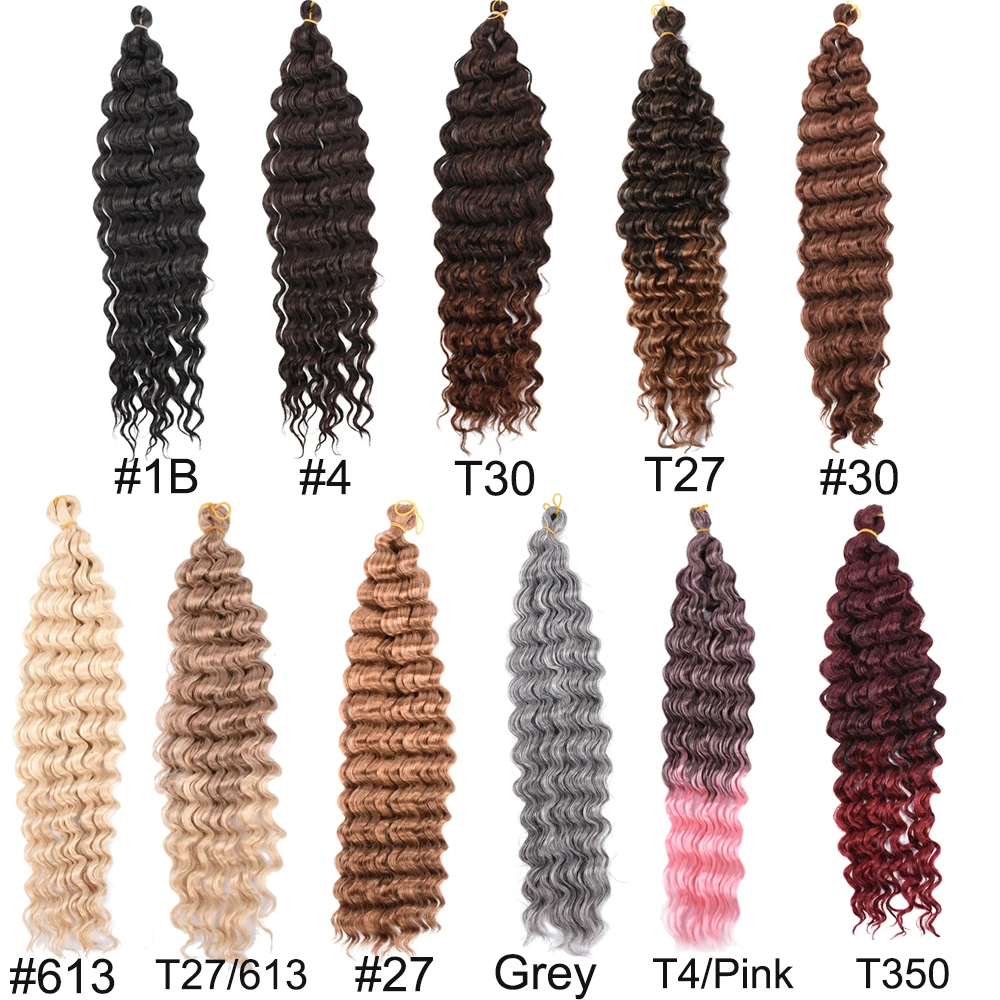 Long Deep Wave Twist Crochet Hair Natural Synthetic Crochet Braid Afro Curls Ombre Braiding Hair Extensions Low Tempreture