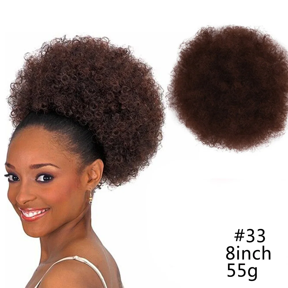 Short Afro Puff Synthetic Hair Bun Chignon Hairpiece For Women Kids Wig Drawstring Ponytail Kinky Curly Clip in Extensions