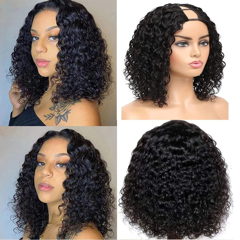8-12 inch Short Afro Curly U Part Bob Wig Synthetic Upart Wigs For Black Women Natural Black Leave Out No Gel Daily Use