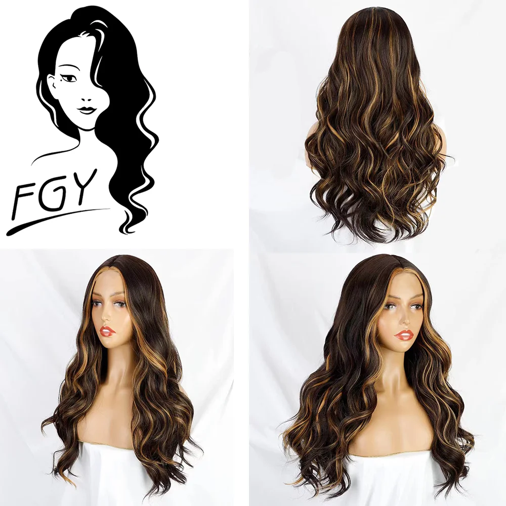 FGY Waves and Long Waves Women's Natural Curly Wigs Mid-Synthetic Wigs Gold Black Women's Glueless Wigs Daily Use 26 Inches