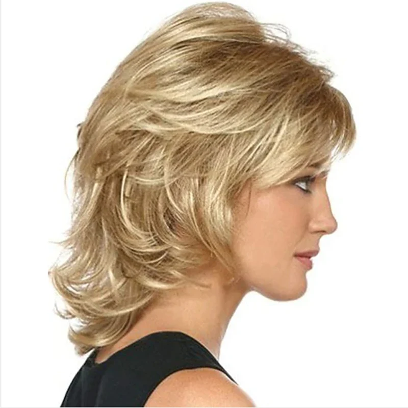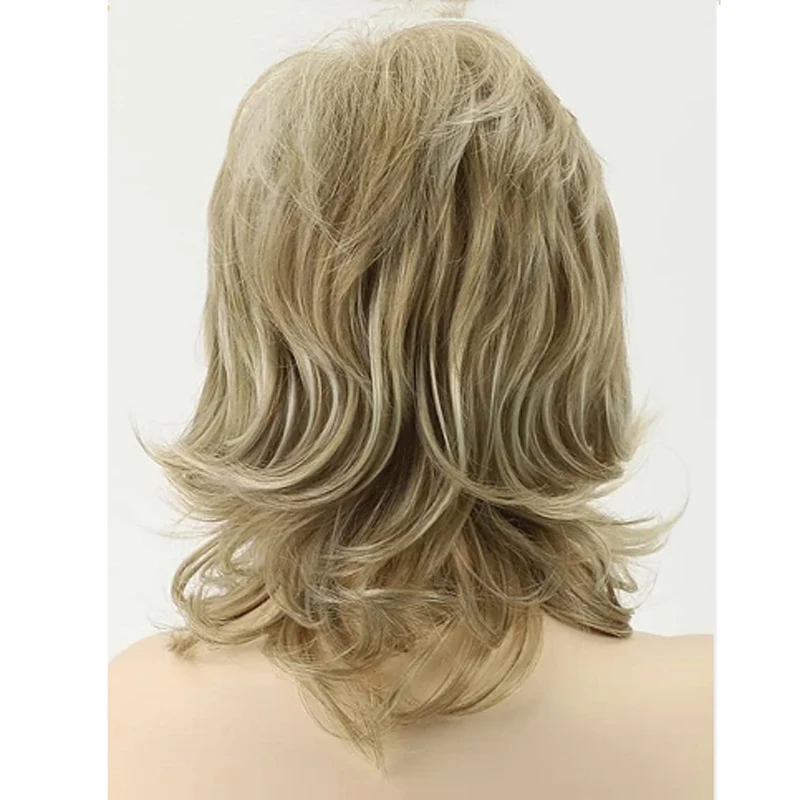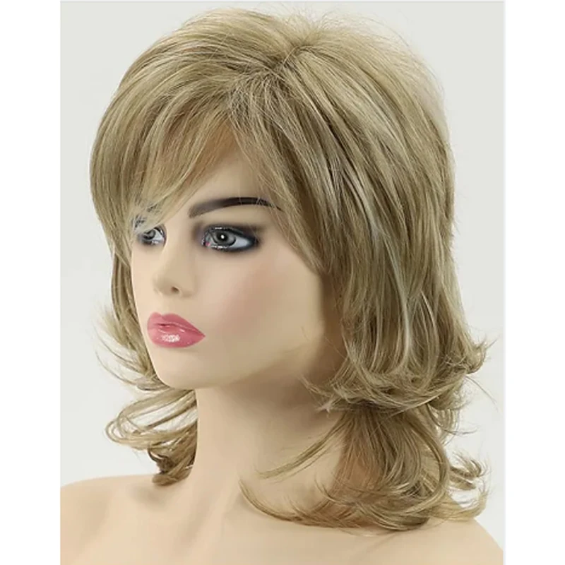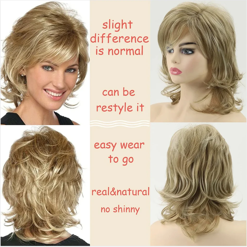 HAIRJOY Synthetic Hair Short Mixed Blonde Curly Wig with Bangs Wigs for Women