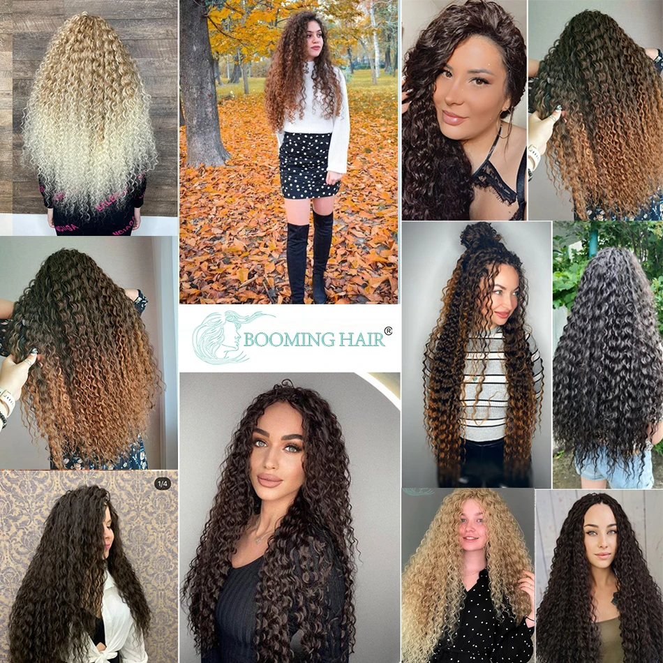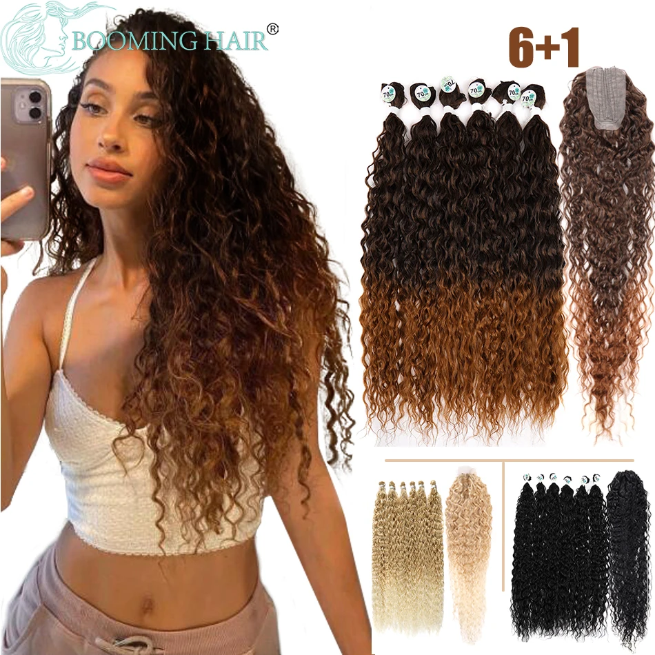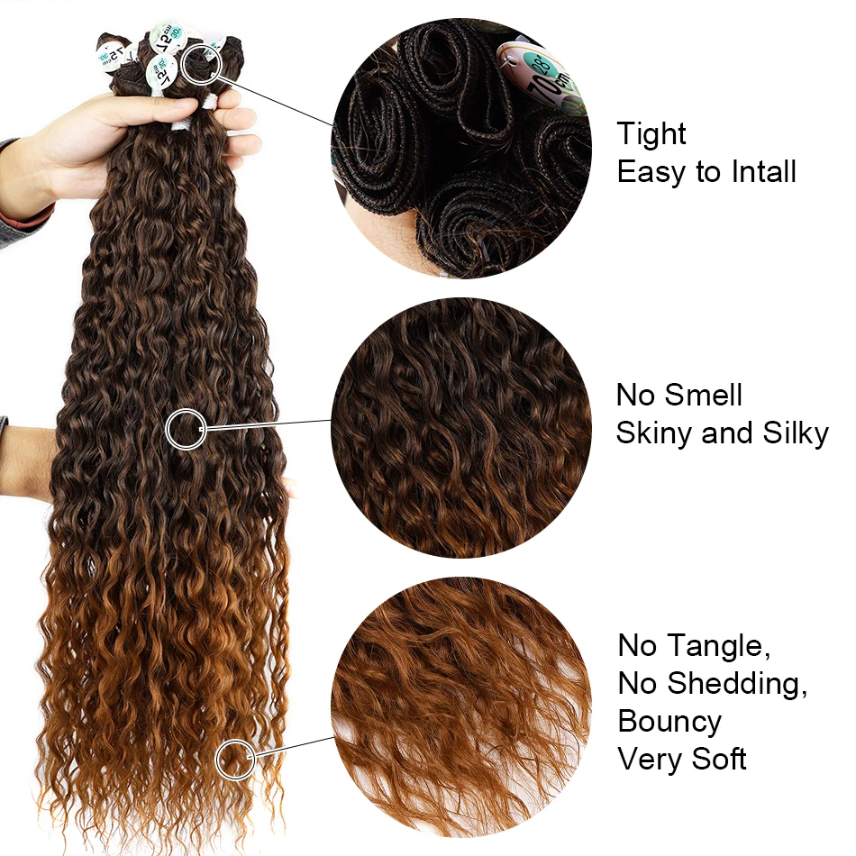 Kinky Curly Bundles With Closure Synthetic Organic Fake Hair Extensions Anjo Plus Deep Wave 30Inch Super Long Weave Afro Curls