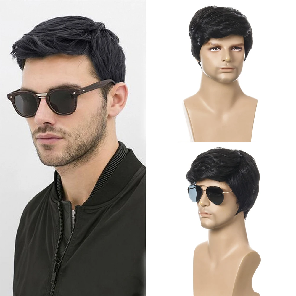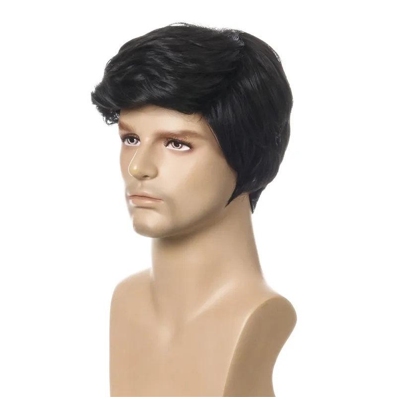 Men Short Black Hair Synthetic Wigs for Men's Daily Wig Male Curly Natural Hair Heat Resistant Breathable